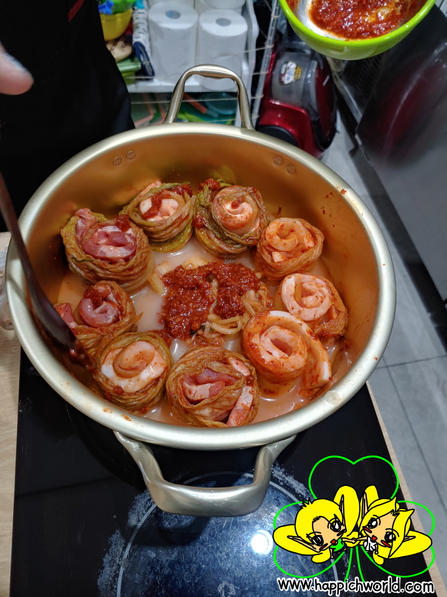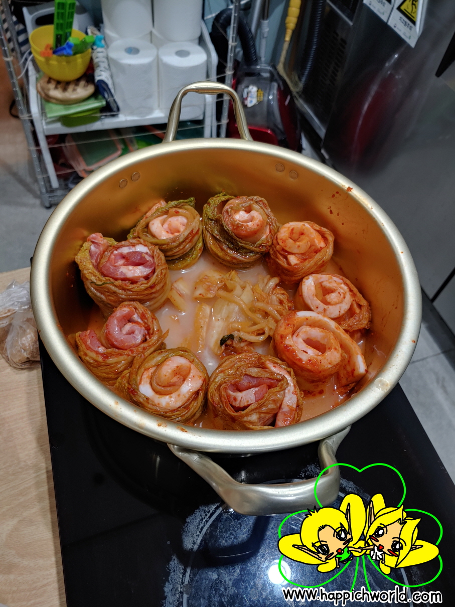 오오~~~ 이렇게 김치와 삼겹살을 말아서 만드는 요리인가봅니다.ㅎ